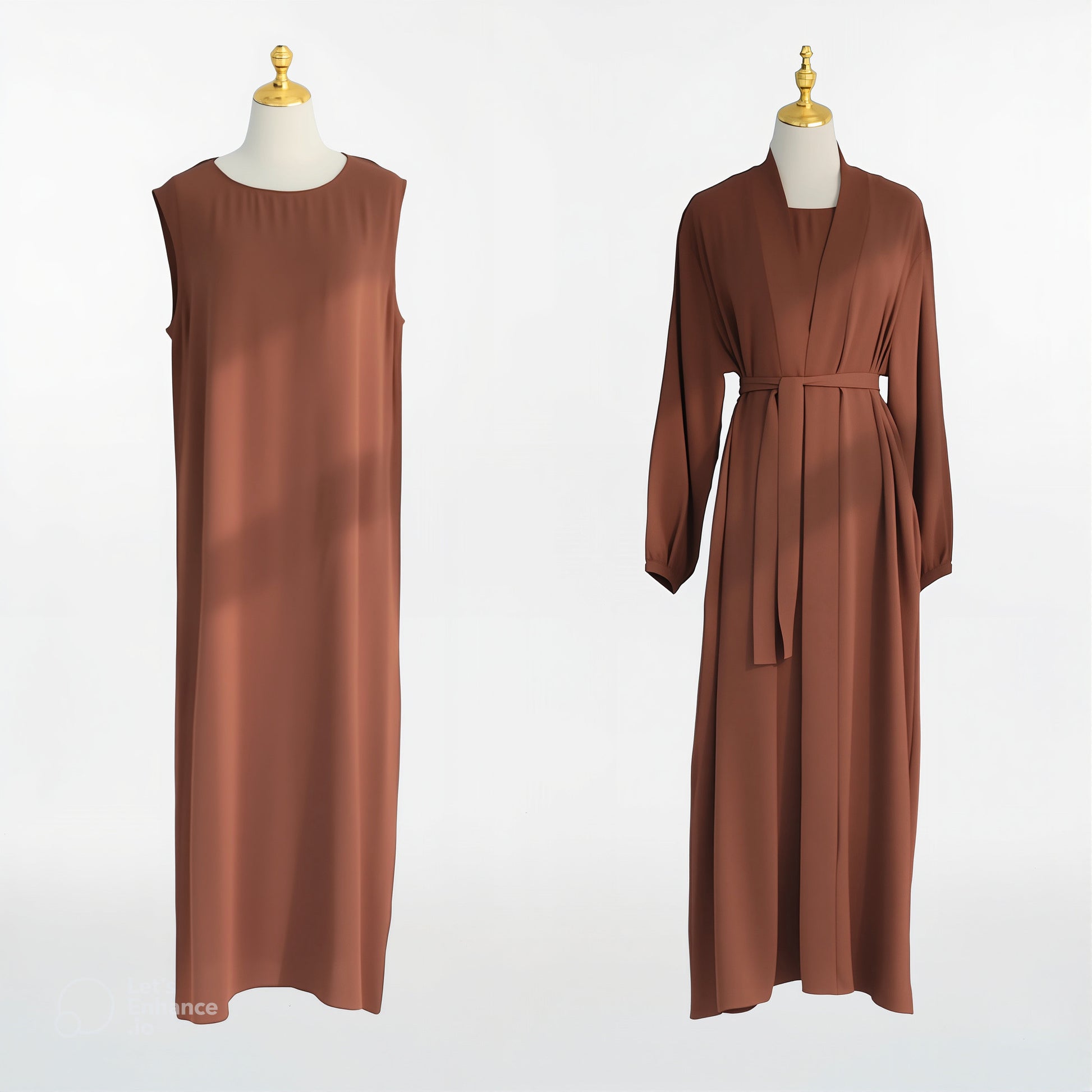 - Complete 2-Piece Ensemble: Includes a flowing Front-Open Cardigan (Abaya) and a matching Inner Slip Dress. Wear them together for a layered look or style them separately for maximum versatility.